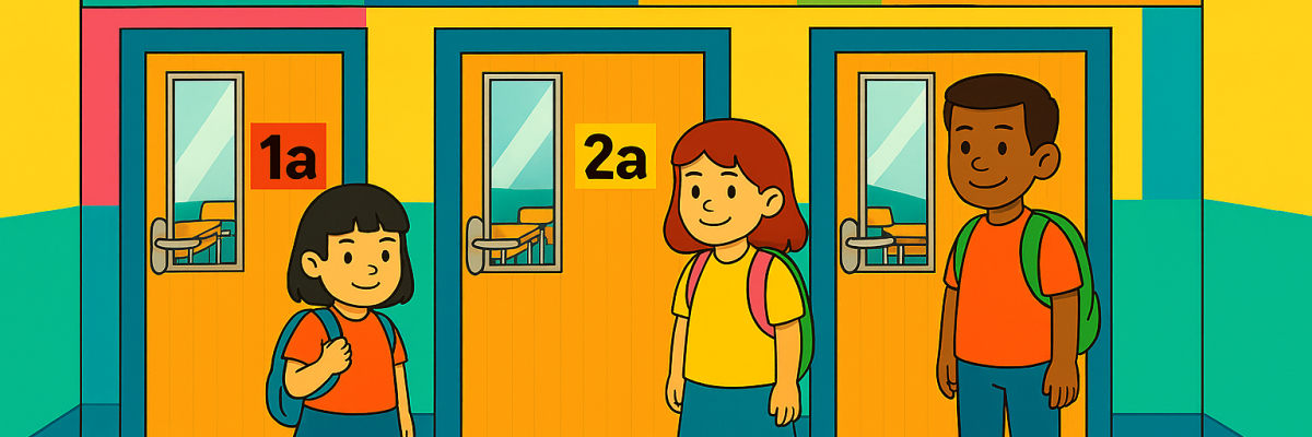 Drei Lernfamilien zusammen bilden eine Etagenfamilie, z.B. Klasse 1a, 2a und 3a oder Klasse 4b, 5b und 6b.
